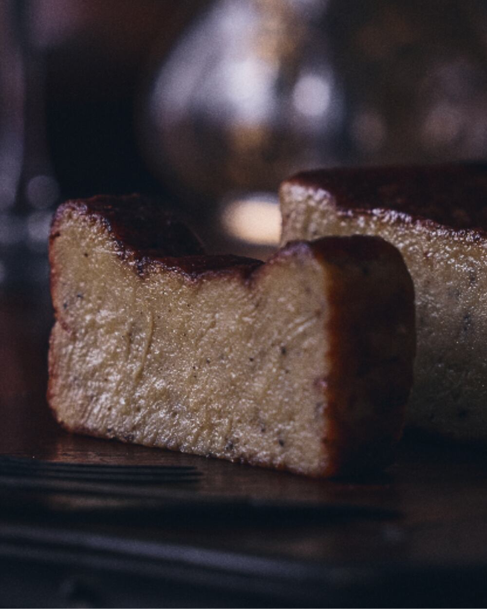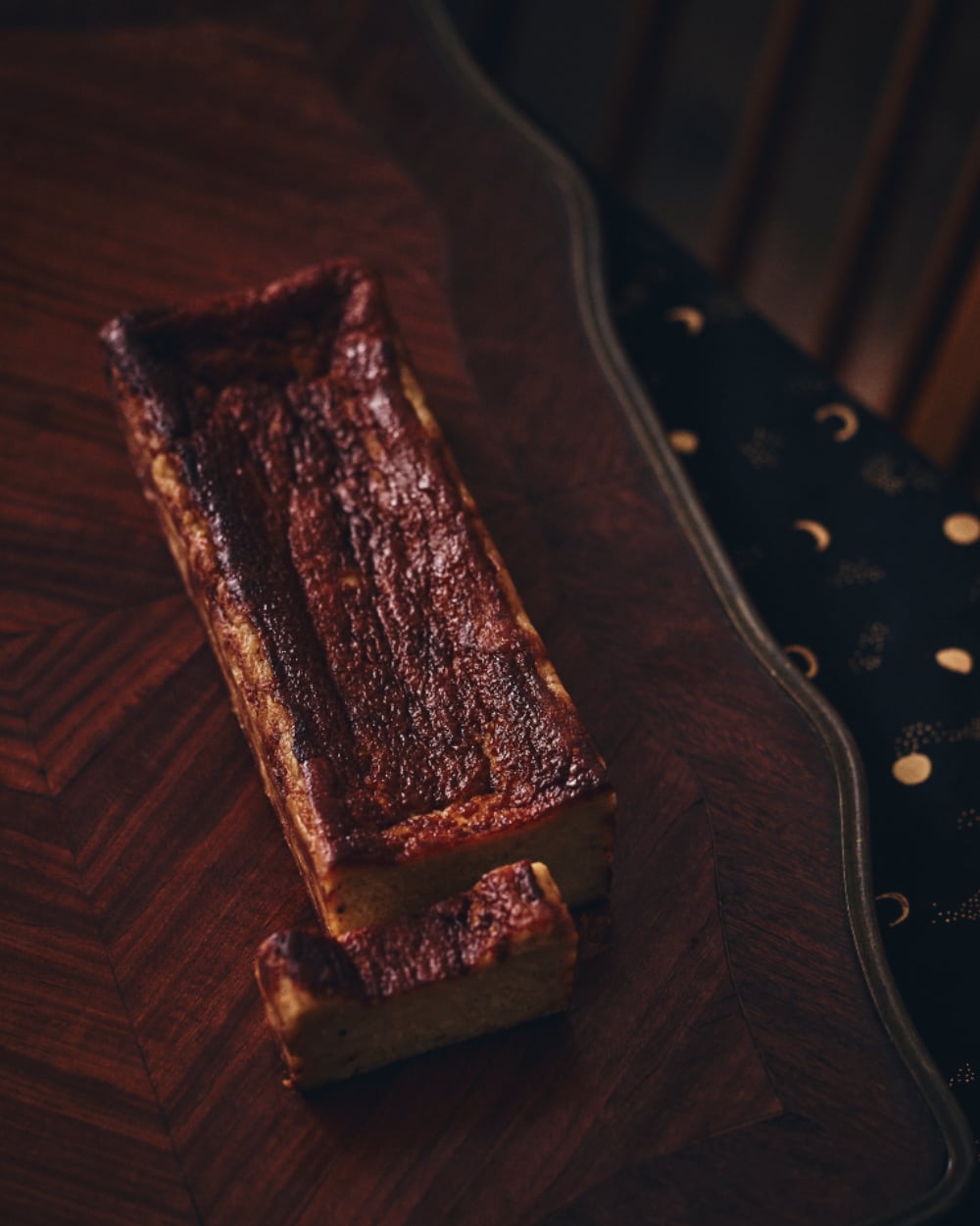 フレンチレストラン「LIEN」のオーナーシェフ・ウエハラコウイチ氏をDUOパートナーに迎えてお作りしたレストランデザートであり、贅沢で特別なテリーヌチーズケーキシリーズ「少しの沈黙」のもう1つの看板商品ともいえるのが、こちらの「BLACK PEPPER & WASHED CHEESE CAKE」。